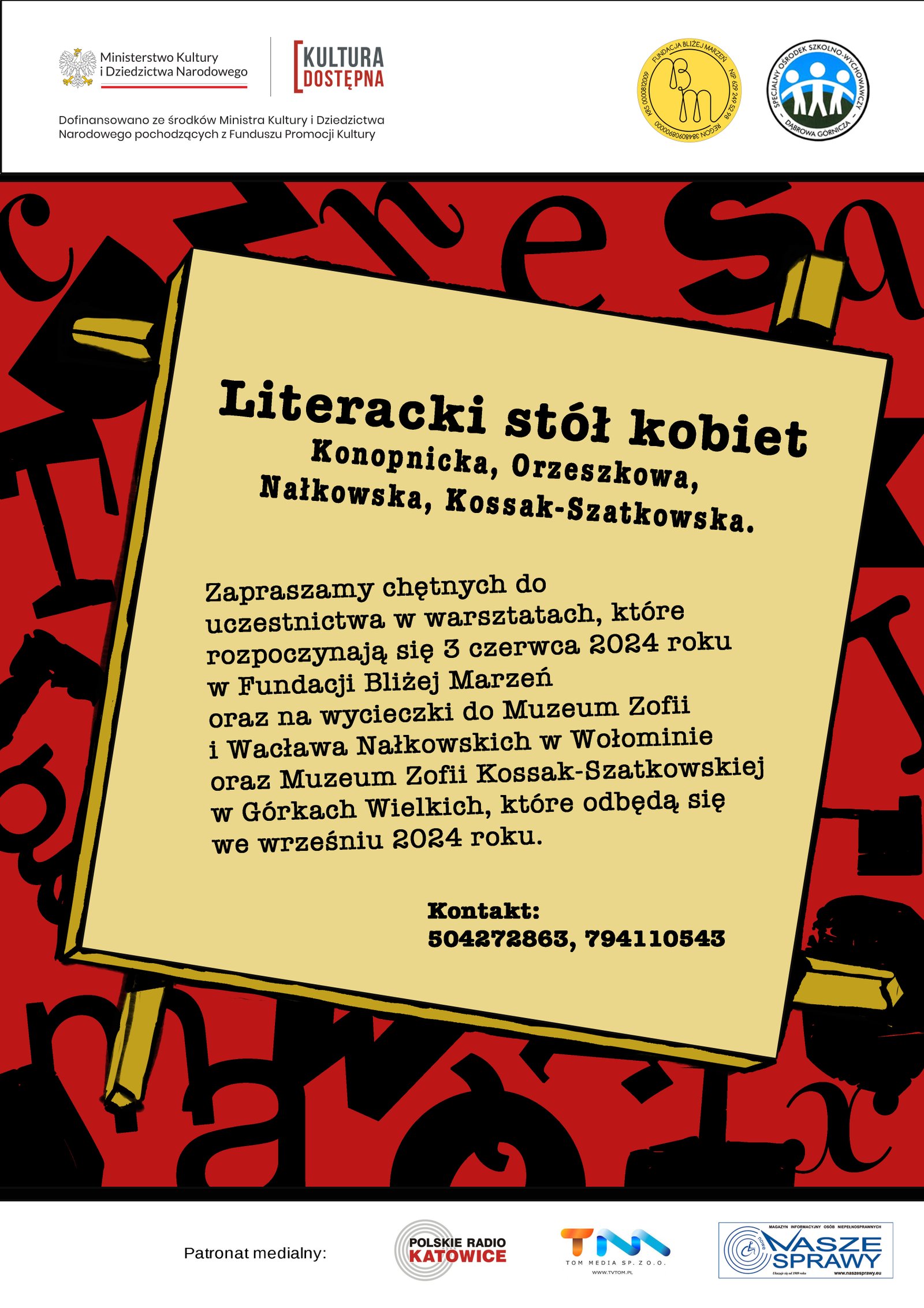 Fundacja Bliżej Marzeń realizuje projekt dofinansowany ze środków Ministra Kultury i Dziedzictwa Narodowego pochodzących z Funduszu Kultury – państwowego funduszu celowego” NCK „Kultura Dostępna” 2024